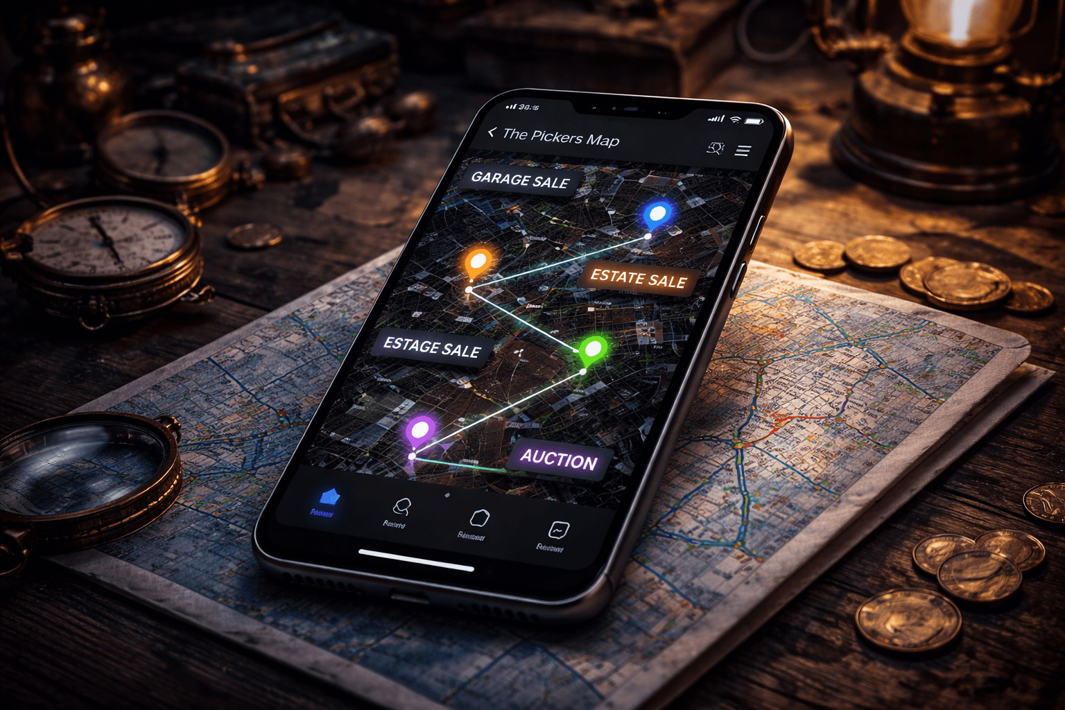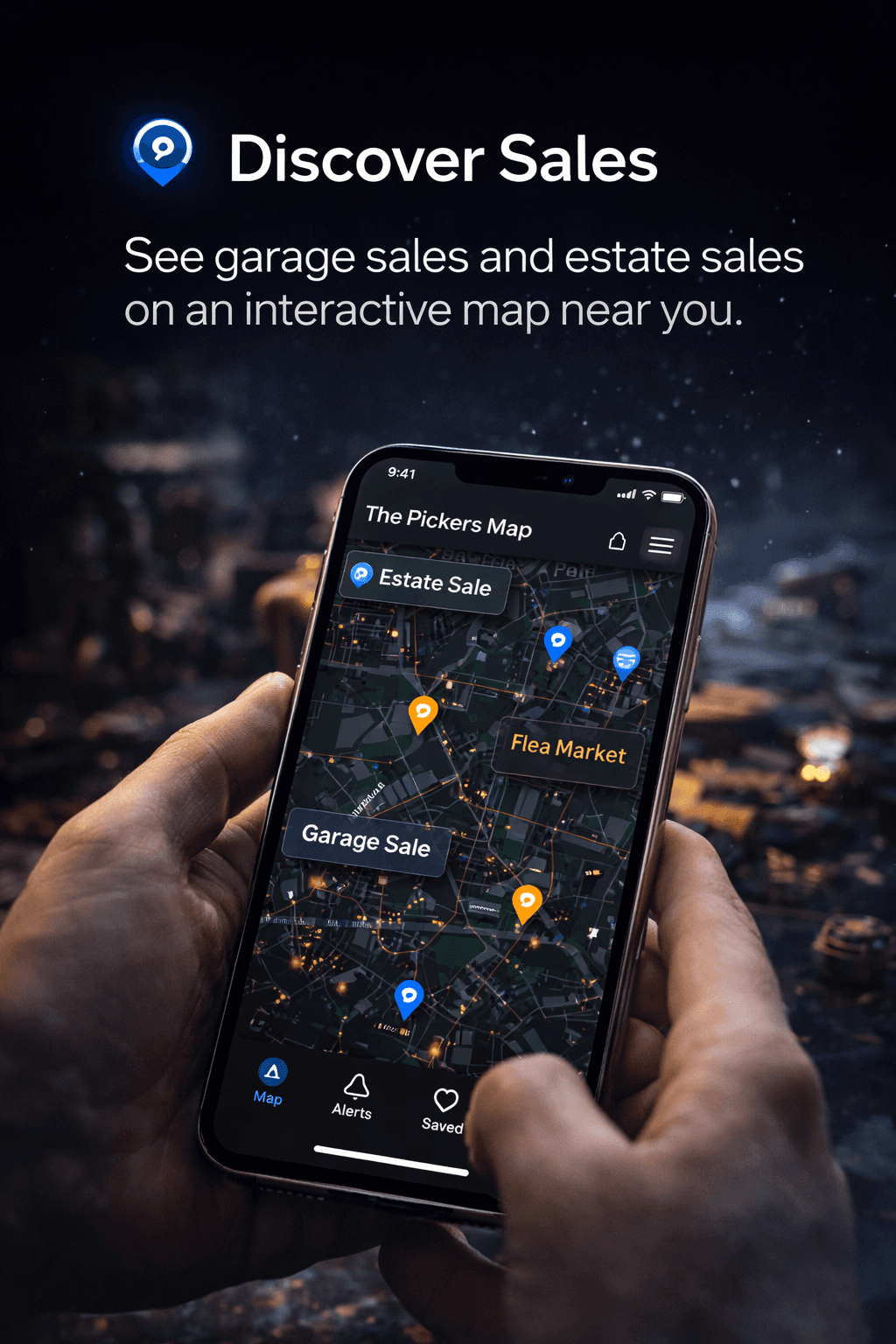 Discover sales, build your route, and get real-time Treasure Alerts. The Pickers Map puts every sale and hidden find at your fingertips with an easy-to-use interface. See the full experience on your phone.
